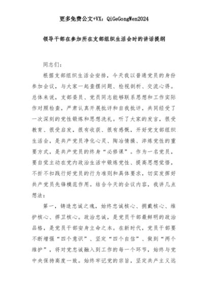 【七哥公文】2025年:领导干部在参加所在支部组织生活会时的讲话提纲+更多免费公文+VX:QiGeGongWen2024+更多免费公文+VX:QiGeGongWen2024