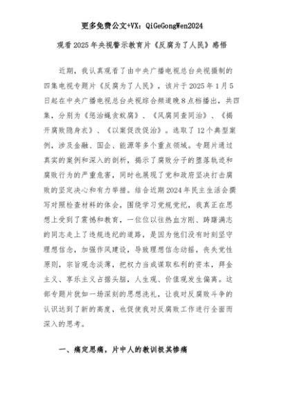 【七哥公文】2025年:观看2025年央视警示教育片《反腐为了人民》感悟+更多免费公文+VX:QiGeGongWen2024+更多免费公文+VX:QiGeGongWen2024