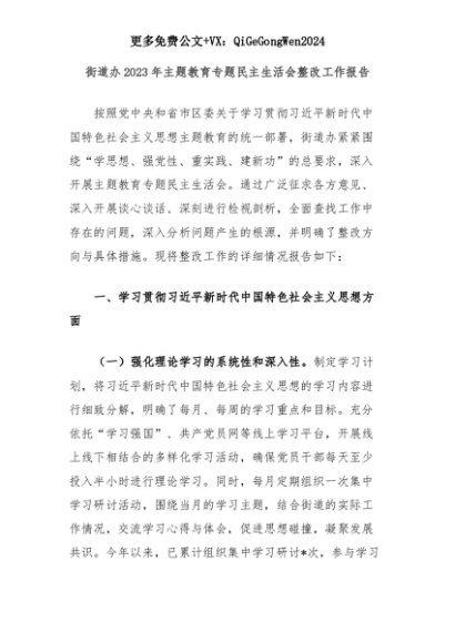 【七哥公文】2025年:街道办2023年主题教育专题民主生活会整改工作报告+更多免费公文+VX:QiGeGongWen2024+更多免费公文+VX:QiGeGongWen2024