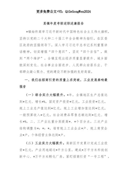 【七哥公文】2025年:某镇年度考核述职述廉报告+更多免费公文+VX:QiGeGongWen2024+更多免费公文+VX:QiGeGongWen2024