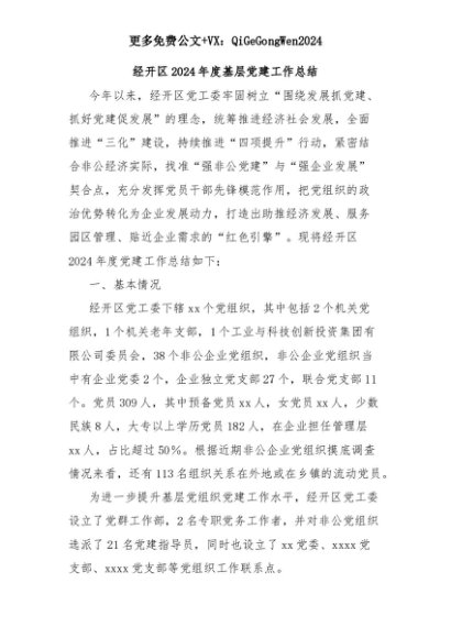【七哥公文】2025年:经开区2024年度基层党建工作总结+更多免费公文+VX:QiGeGongWen2024+更多免费公文+VX:QiGeGongWen2024