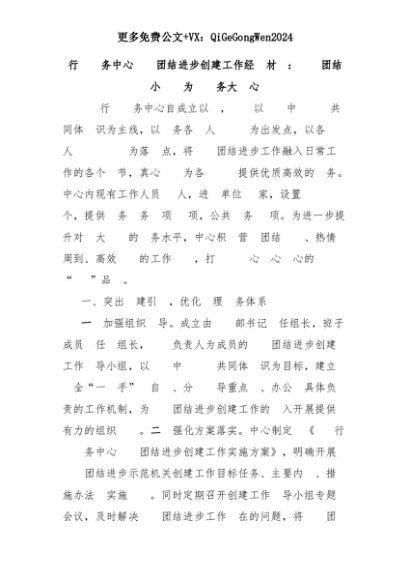 【七哥公文】2025年:行政服务中心民族团结进步创建工作经验材料:民族团结小窗口为民服务大爱心+更多免费公文+VX:QiGeGongWen2024+更多免费公文+VX:QiGeGongWen2024
