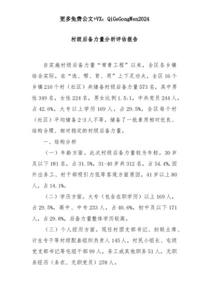 【七哥公文】2025年:村级后备力量分析评估报告+更多免费公文+VX:QiGeGongWen2024+更多免费公文+VX:QiGeGongWen2024