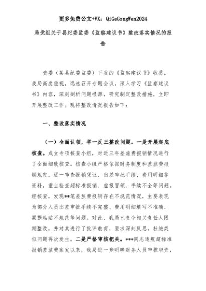【七哥公文】2025年:局党组关于县纪委监委《监察建议书》整改落实情况的报告+更多免费公文+VX:QiGeGongWen2024+更多免费公文+VX:QiGeGongWen2024