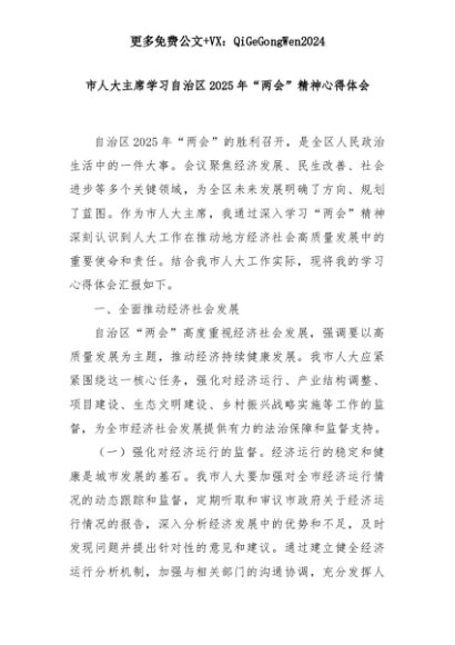 【七哥公文】2025年:市人大主席学习自治区2025年“两会”精神心得体会+更多免费公文+VX:QiGeGongWen2024+更多免费公文+VX:QiGeGongWen2024