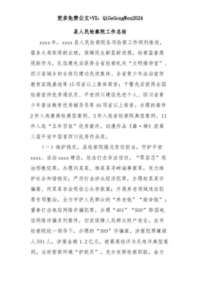 【七哥公文】2025年:县人民检察院工作总结+更多免费公文+VX:QiGeGongWen2024+更多免费公文+VX:QiGeGongWen2024