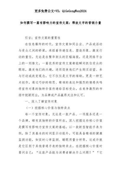 【七哥公文】2025年:如何撰写一篇有影响力的宣传文案:释放文字的营销力量+更多免费公文+VX:QiGeGongWen2024+更多免费公文+VX:QiGeGongWen2024