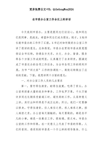 【七哥公文】2025年:在市委办公室工作会议上的讲话+更多免费公文+VX:QiGeGongWen2024+更多免费公文+VX:QiGeGongWen2024