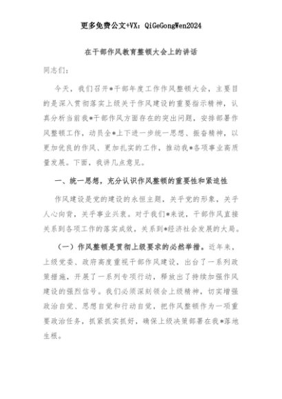 【七哥公文】2025年:在干部作风教育整顿大会上的讲话+更多免费公文+VX:QiGeGongWen2024+更多免费公文+VX:QiGeGongWen2024