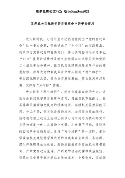 【七哥公文】2025年:发挥机关在推进党的自我革命中的带头作用+更多免费公文+VX:QiGeGongWen2024+更多免费公文+VX:QiGeGongWen2024