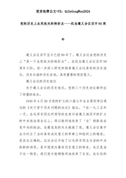 【七哥公文】2025年:党的历史上生死攸关的转折点——纪念遵义会议召开90周年+更多免费公文+VX:QiGeGongWen2024+更多免费公文+VX:QiGeGongWen2024