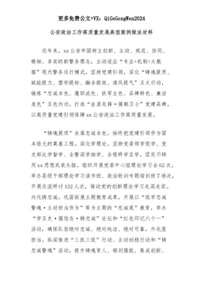 【七哥公文】2025年:公安政治工作高质量发展典型案例做法材料+更多免费公文+VX:QiGeGongWen2024+更多免费公文+VX:QiGeGongWen2024