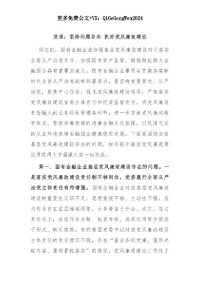 【七哥公文】2025年:党课:坚持问题导向 抓好党风廉政建设+更多免费公文+VX:QiGeGongWen2024+更多免费公文+VX:QiGeGongWen2024