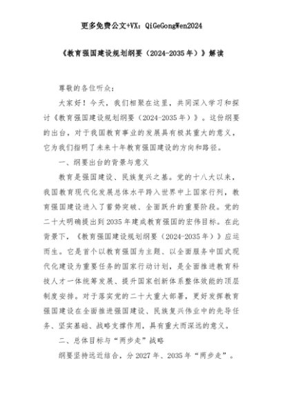 【七哥公文】2025年:《教育强国建设规划纲要(2024-2035年)》解读+更多免费公文+VX:QiGeGongWen2024+更多免费公文+VX:QiGeGongWen2024