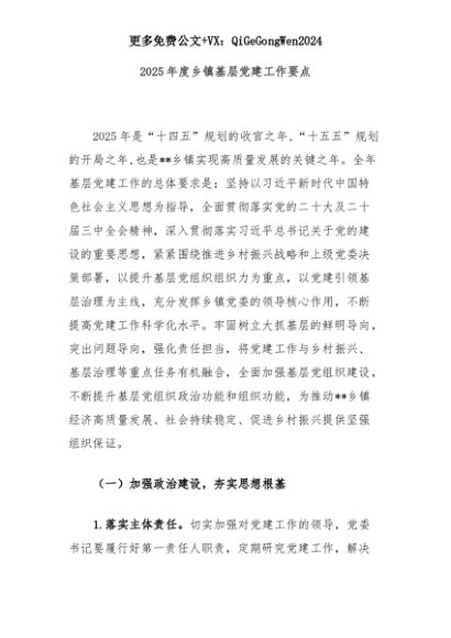 【七哥公文】2025年:2025年度乡镇基层党建工作要点+更多免费公文+VX:QiGeGongWen2024+更多免费公文+VX:QiGeGongWen2024