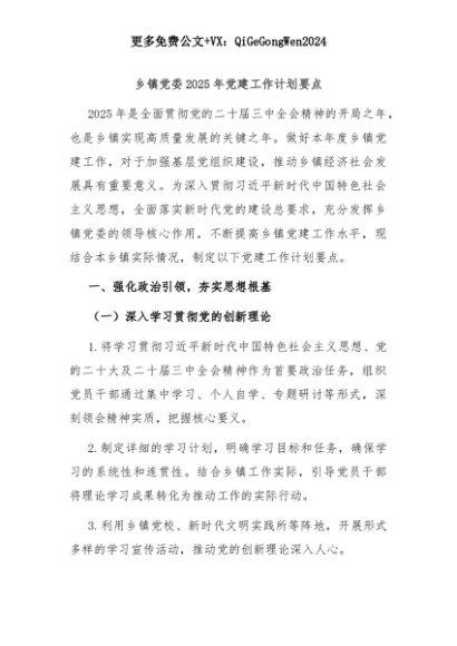 【七哥公文】2025年:乡镇党委2025年党建工作计划要点+更多免费公文+VX:QiGeGongWen2024+更多免费公文+VX:QiGeGongWen2024