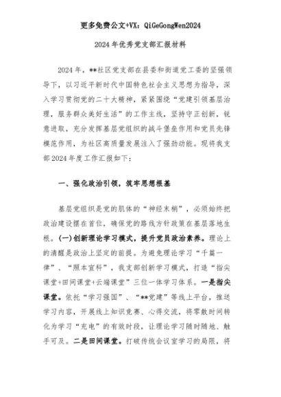 【七哥公文】2025年:2024年优秀党支部汇报材料+更多免费公文+VX:QiGeGongWen2024+更多免费公文+VX:QiGeGongWen2024