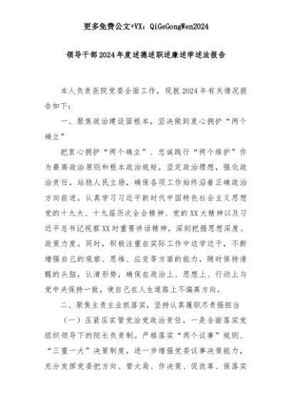 【七哥公文】2025年:领导干部2024年度述德述职述廉述学述法报告+更多免费公文+VX:QiGeGongWen2024+更多免费公文+VX:QiGeGongWen2024