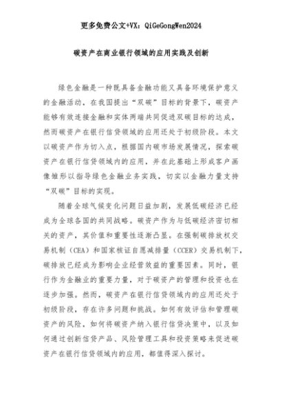 【七哥公文】2025年:碳资产在商业银行领域的应用实践及创新+更多免费公文+VX:QiGeGongWen2024+更多免费公文+VX:QiGeGongWen2024