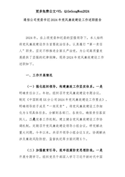 【七哥公文】2025年:通信公司党委书记2024年党风廉政建设工作述职报告+更多免费公文+VX:QiGeGongWen2024+更多免费公文+VX:QiGeGongWen2024