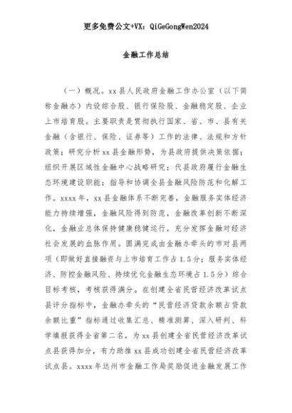 【七哥公文】2025年:金融工作总结+更多免费公文+VX:QiGeGongWen2024+更多免费公文+VX:QiGeGongWen2024