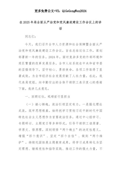 【七哥公文】2025年:在2025年局全面从严治党和党风廉政建设工作会议上的讲话+更多免费公文+VX:QiGeGongWen2024+更多免费公文+VX:QiGeGongWen2024