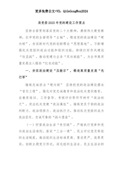 【七哥公文】2025年:局党委2025年党的建设工作要点+更多免费公文+VX:QiGeGongWen2024+更多免费公文+VX:QiGeGongWen2024