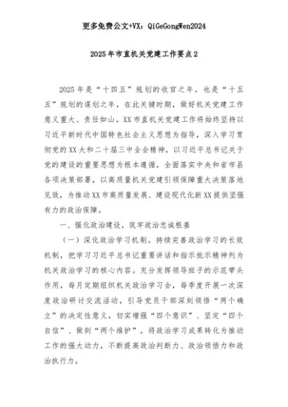 【七哥公文】2025年:2025年市直机关党建工作要点2+更多免费公文+VX:QiGeGongWen2024+更多免费公文+VX:QiGeGongWen2024