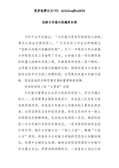 【七哥公文】2025年:创新乡村振兴投融资机制+更多免费公文+VX:QiGeGongWen2024+更多免费公文+VX:QiGeGongWen2024