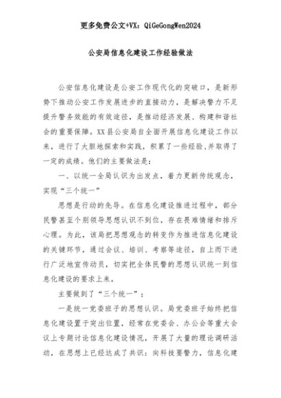 【七哥公文】2025年:公安局信息化建设工作经验做法+更多免费公文+VX:QiGeGongWen2024+更多免费公文+VX:QiGeGongWen2024