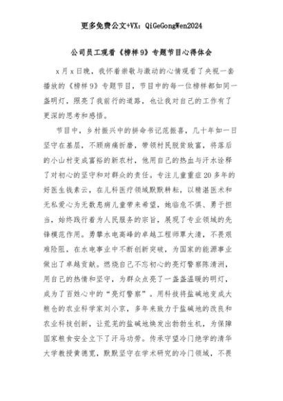 【七哥公文】2025年:公司员工观看《榜样9》专题节目心得体会+更多免费公文+VX:QiGeGongWen2024+更多免费公文+VX:QiGeGongWen2024