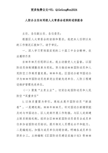 【七哥公文】2025年:人防办主任向同级人大常委会述职的述职报告+更多免费公文+VX:QiGeGongWen2024+更多免费公文+VX:QiGeGongWen2024