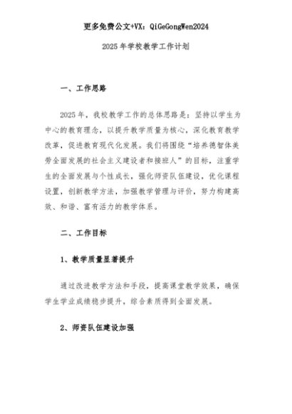 【七哥公文】2025年:2025年学校教学工作计划+更多免费公文+VX:QiGeGongWen2024+更多免费公文+VX:QiGeGongWen2024