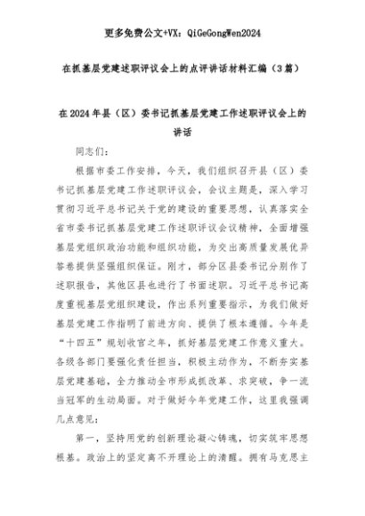 【七哥公文】2025年:(3篇)在抓基层党建述职评议会上的点评讲话材料汇编+更多免费公文+VX:QiGeGongWen2024+更多免费公文+VX:QiGeGongWen2024