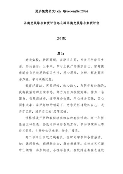 【七哥公文】2025年:(10篇)品德发展综合素质评价合集+更多免费公文+VX:QiGeGongWen2024+更多免费公文+VX:QiGeGongWen2024