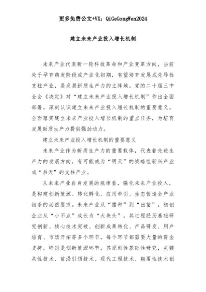 【七哥公文】2025年:建立未来产业投入增长机制+更多免费公文+VX:QiGeGongWen2024+更多免费公文+VX:QiGeGongWen2024