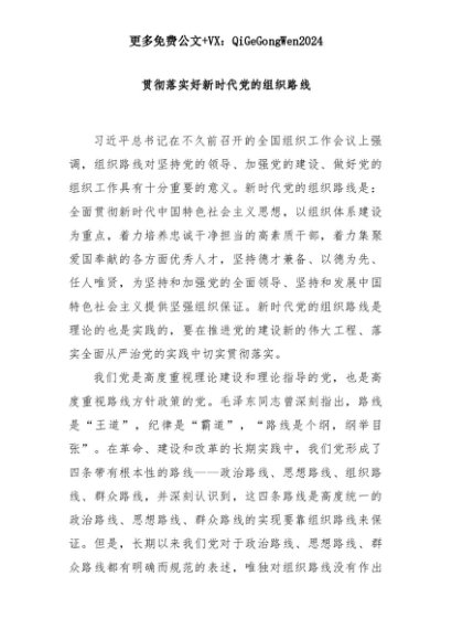 【七哥公文】2025年:贯彻落实好新时代党的组织路线+更多免费公文+VX:QiGeGongWen2024+更多免费公文+VX:QiGeGongWen2024