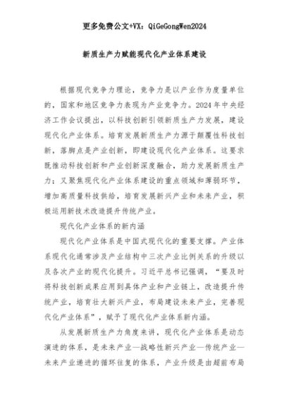 【七哥公文】2025年:新质生产力赋能现代化产业体系建设+更多免费公文+VX:QiGeGongWen2024+更多免费公文+VX:QiGeGongWen2024