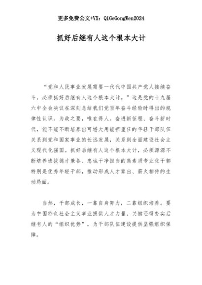 【七哥公文】2025年:抓好后继有人这个根本大计+更多免费公文+VX:QiGeGongWen2024+更多免费公文+VX:QiGeGongWen2024