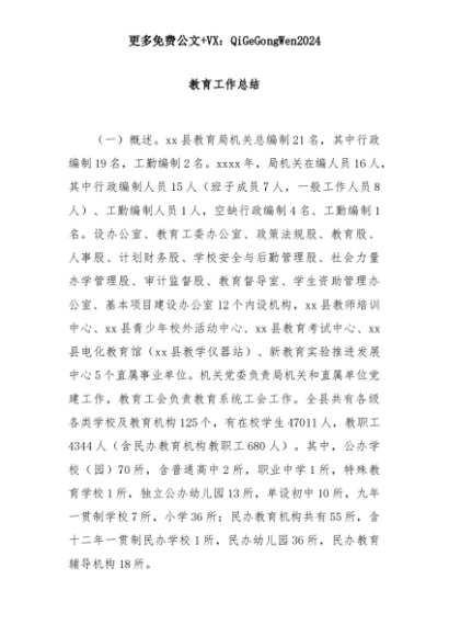 【七哥公文】2025年:教育工作总结+更多免费公文+VX:QiGeGongWen2024+更多免费公文+VX:QiGeGongWen2024