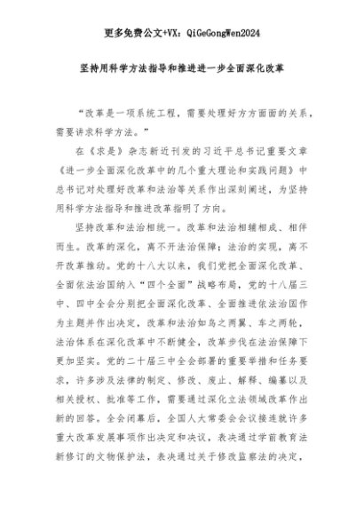 【七哥公文】2025年:坚持用科学方法指导和推进进一步全面深化改革+更多免费公文+VX:QiGeGongWen2024+更多免费公文+VX:QiGeGongWen2024