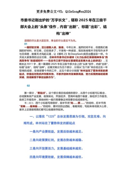 【七哥公文】2025年:市委书记刚出炉的“万字长文”,堪称2025年在三级干部大会上的“头条”佳作,内容“出新”、标题“出彩”、结构“出神”+更多免费公文+VX:QiGeGongWen2024+更多免费公文+VX:QiGeGongWen2024