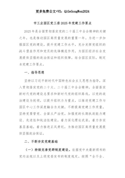 【七哥公文】2025年:市工业园区党工委2025年党建工作要点+更多免费公文+VX:QiGeGongWen2024+更多免费公文+VX:QiGeGongWen2024