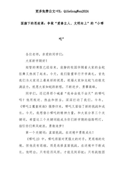 【七哥公文】2025年:国旗下的思政课:争做“爱善立人、文明向上”的“小哪吒”+更多免费公文+VX:QiGeGongWen2024+更多免费公文+VX:QiGeGongWen2024