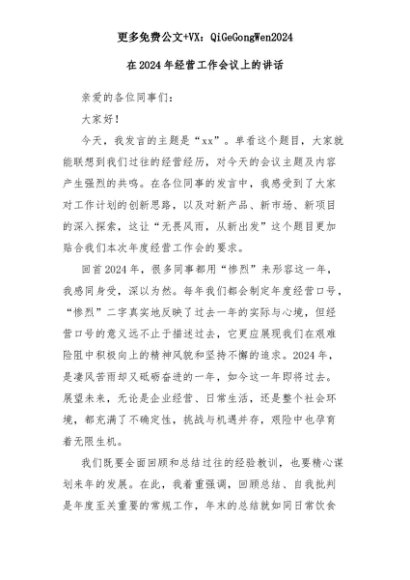 【七哥公文】2025年:在2024年经营工作会议上的讲话+更多免费公文+VX:QiGeGongWen2024+更多免费公文+VX:QiGeGongWen2024