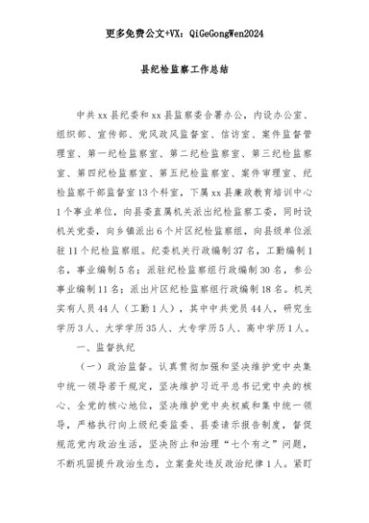 【七哥公文】2025年:县纪检监察工作总结+更多免费公文+VX:QiGeGongWen2024+更多免费公文+VX:QiGeGongWen2024