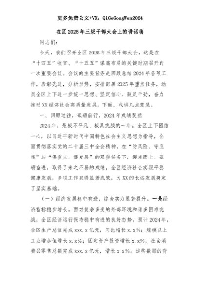 【七哥公文】2025年:在区2025年三级干部大会上的讲话稿+更多免费公文+VX:QiGeGongWen2024+更多免费公文+VX:QiGeGongWen2024