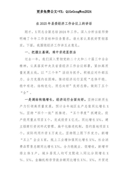 【七哥公文】2025年:在2025年县委经济工作会议上的讲话+更多免费公文+VX:QiGeGongWen2024+更多免费公文+VX:QiGeGongWen2024