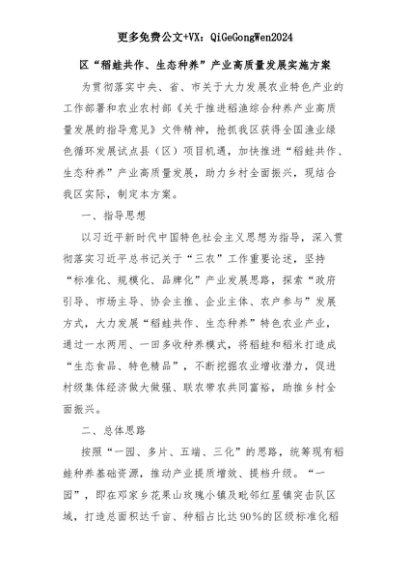 【七哥公文】2025年:区“稻蛙共作、生态种养”产业高质量发展实施方案+更多免费公文+VX:QiGeGongWen2024+更多免费公文+VX:QiGeGongWen2024