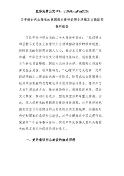 【七哥公文】2025年:关于新时代加强党的意识形态建设的历史逻辑及实践路径探析报告+更多免费公文+VX:QiGeGongWen2024+更多免费公文+VX:QiGeGongWen2024